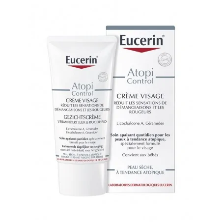 Eucerin atopicontrol Crème visage calmante 12% Oméga Cette crème « huile dans eau » facilement absorbée hydrate, calme et redonne souplesse à la peau. Les sensations de démangeaison et de tiraillement son soulagées. Elle procure une sensation de douceur et de souplesse à la peau. nnActifs nEucerin AtopiControl Crème Visage Calmante est une crème riche en huile d’onagre et d’huile de pépins de raisins qui apporte la quantité d’oméga 6 nécessaire à la qualité de la peau. nnAtopiControl Crème Visage Calmante diminue les problèmes de dessèchement et vous permet d’atténuer les sensations de démengeaisons et de tiraillements. nnLe soin AtopiControl Crème Visage Calmante convient aux nourrissons, il peut être utiliser dans les cas d’eczéma atopique, grâce à son action anti-inflammatoire ou comme base de maquillage. nnSa formule légère et rapide d’absorption a été testée en vue de minimiser les risques de réactions allergiques et sans colorant. nnType de peau nPeaux à tendance atopiques, peaux très sèches sujettes aux rougeurs. nnUTILISATION: nnUsage quotidien. Appliquez une ou deux fois par jour sur le visage propre et sain. nnCOMPOSITION: nnaqua, glycerin, oenothera biennis, vitis vinifera, caprylic/capric triglyceride, cyclomethicone, dimethicone, pentaerythrityl tetraisostearate, triisostearin, glyceryl stearate, cetyl alcohol, peg-40 stearate, glycyrrhiza inflate, ceramide 3, citric acid, sodium citrate, bht, 1,2-hexanediol, phenoxyethanol, benzyl alcohol, ethylparaben, methylparaben, proplylparaben. nActifs nEucerin AtopiControl Crème Visage Calmante est une crème riche en huile d’onagre et d’huile de pépins de raisins qui apporte la quantité d’oméga 6 nécessaire à la qualité de la peau. nnAtopiControl Crème Visage Calmante diminue les problèmes de dessèchement et vous permet d’atténuer les sensations de démengeaisons et de tiraillements. nnLe soin AtopiControl Crème Visage Calmante convient aux nourrissons, il peut être utiliser dans les cas d’eczéma atopique, grâce à son action anti-inflammatoire ou comme base de maquillage. nnSa formule légère et rapide d’absorption a été testée en vue de minimiser les risques de réactions allergiques et sans colorant. nnType de peau nPeaux à tendance atopiques, peaux très sèches sujettes aux rougeurs. nnUTILISATION: nnUsage quotidien. Appliquez une ou deux fois par jour sur le visage propre et sain. nnCOMPOSITION: nnaqua, glycerin, oenothera biennis, vitis vinifera, caprylic/capric triglyceride, cyclomethicone, dimethicone, pentaerythrityl tetraisostearate, triisostearin, glyceryl stearate, cetyl alcohol, peg-40 stearate, glycyrrhiza inflate, ceramide 3, citric acid, sodium citrate, bht, 1,2-hexanediol, phenoxyethanol, benzyl alcohol, ethylparaben, methylparaben, proplylparaben. » />